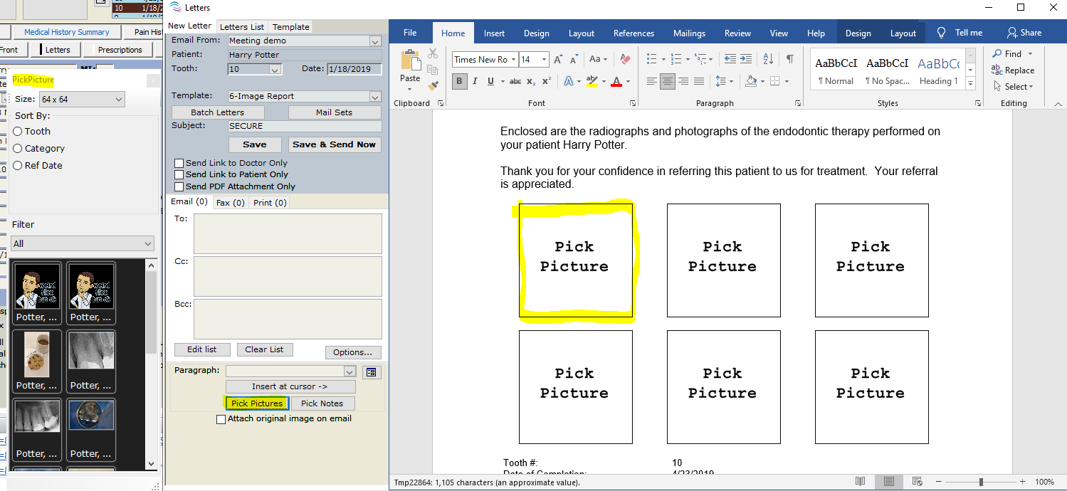 In TDO Version 12, the option that could previously be found (in TDO Version 11 and earlier) under ‘Main Data > Pick X-Rays’ is no longer available. In Version 12, a similar report can be created with the Letters Module.