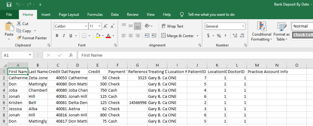 Show Deposits by date, Similar to Reporting Tools> Financial> Reports by Date> Bank Deposits by Date