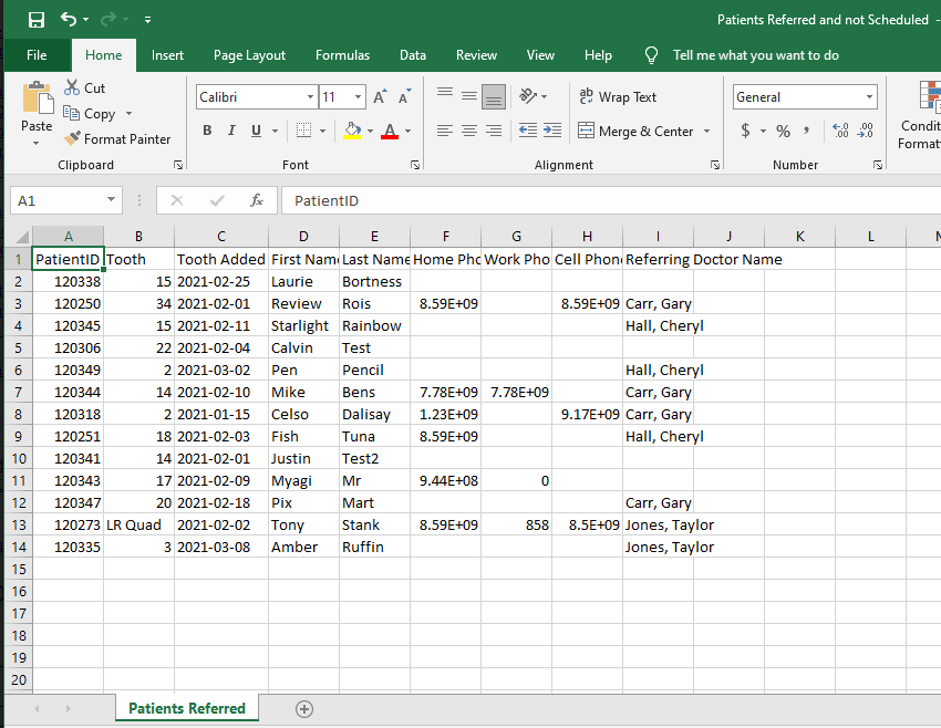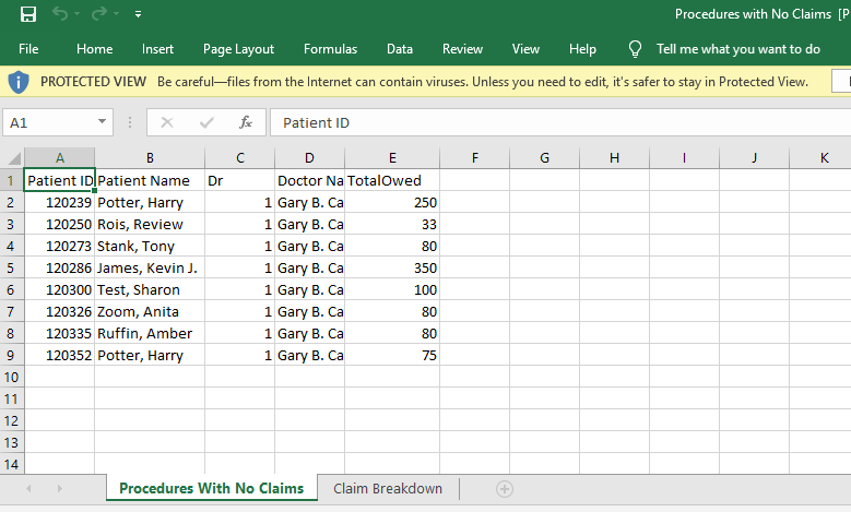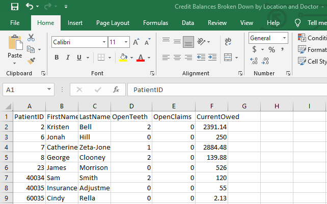 Report will show the Patient Name and ID number, How many teeth are left Open, How many Claims are Open, and the current amount owed.