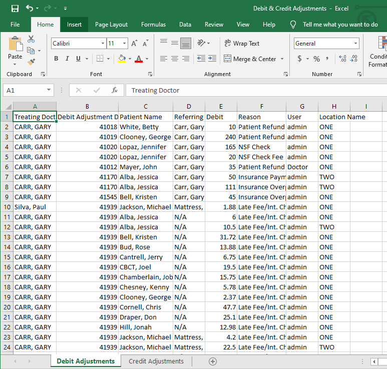 This report will match the list of patients with discrepancies from Administrative>Ledger Adjustment Tool