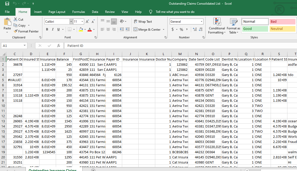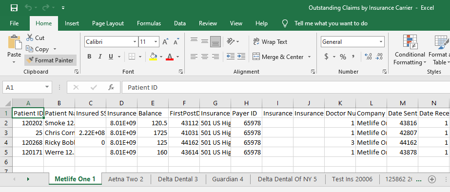 Report Shows Patients with Outstanding claims broken down by Insurances