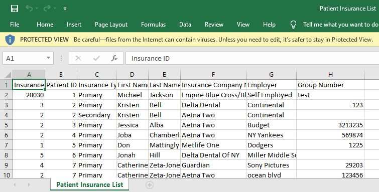 Insurance Co Phone Number, Insurance Address, Payer ID, Insurance Co Contact, Insurance Co Fax, Insurance Company Name
