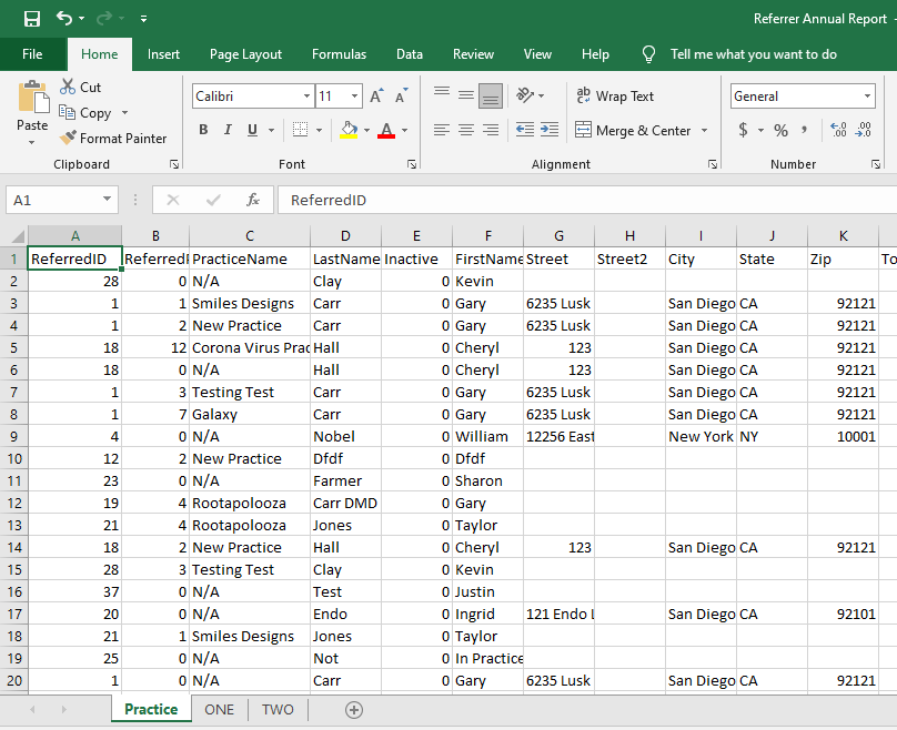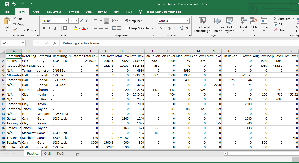 The referral ranking report is the perfect place to see how many patients were seen for Consult and Treatment on a yearly basis.