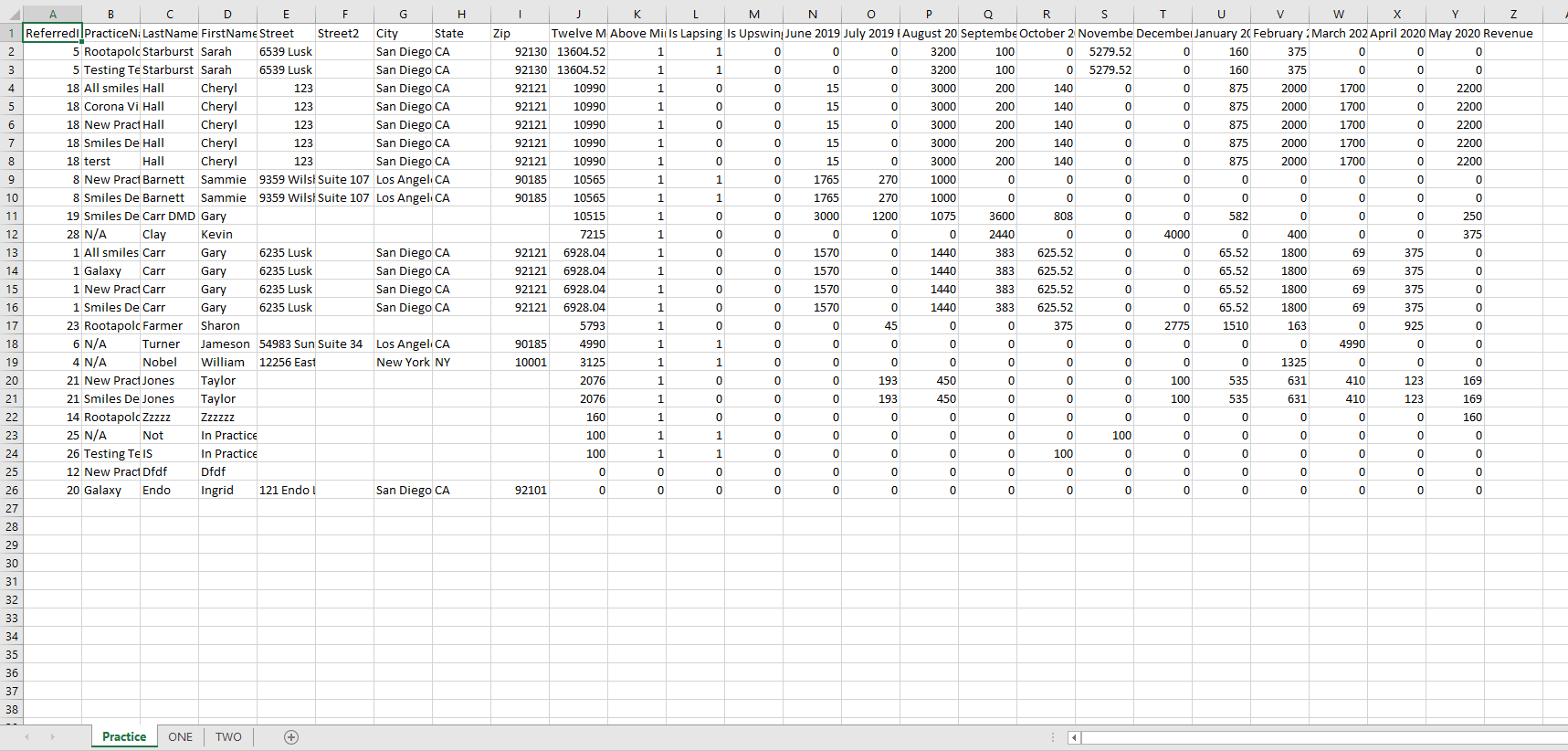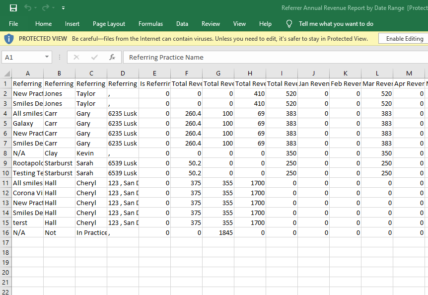 This report will show revenues by referring doctor broken down by month for a calendar year. but you can manually select the date range. Data will only show for that Date Range