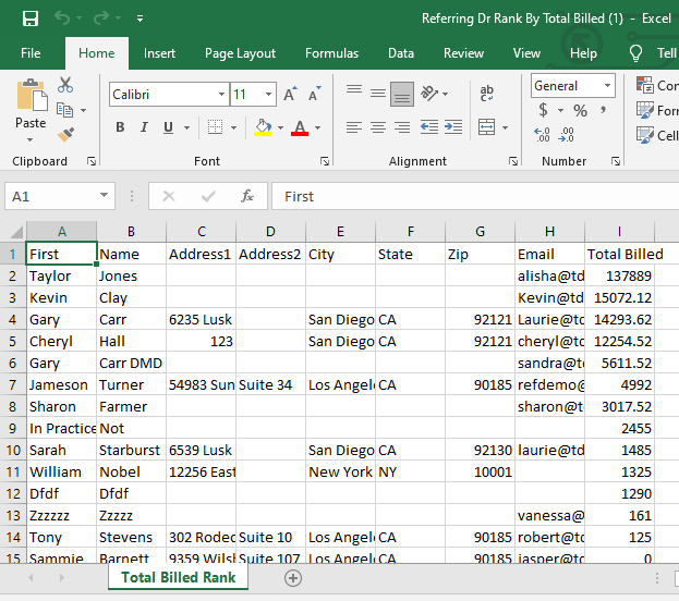 The referral ranking report is the perfect place to see a list of how your referring doctors rank based on Total Billed.