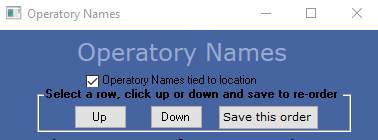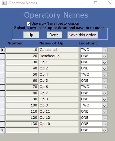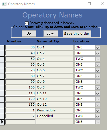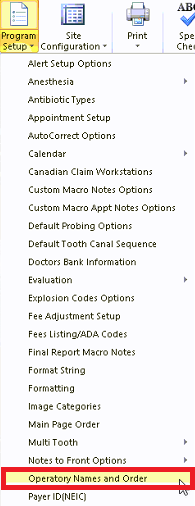 Go to [Setup>Program Setup>Operatory Names and Order]