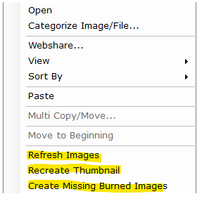 The same options are available when right-clicking in the body of the Image Organizer. Simply right-click anywhere in the right pane of the Image Organizer.