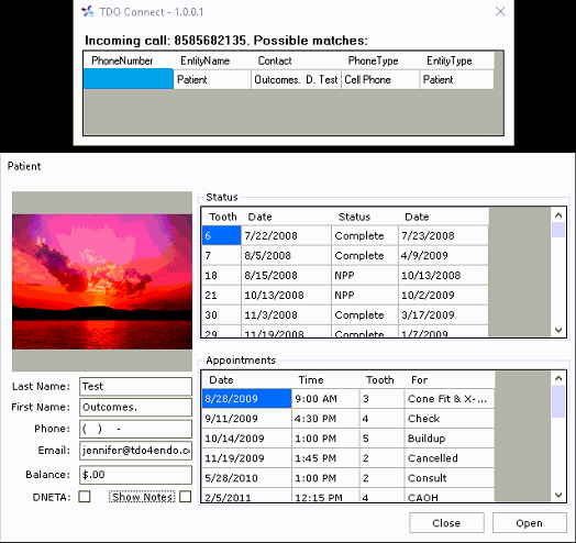 When a patient calls the office the CloudPBX window pop ups on the screen as the incoming call is received.