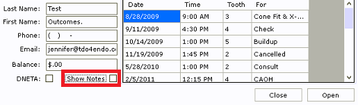 Check the “Show Notes” box and the patient note will display on the CloudPBX window.