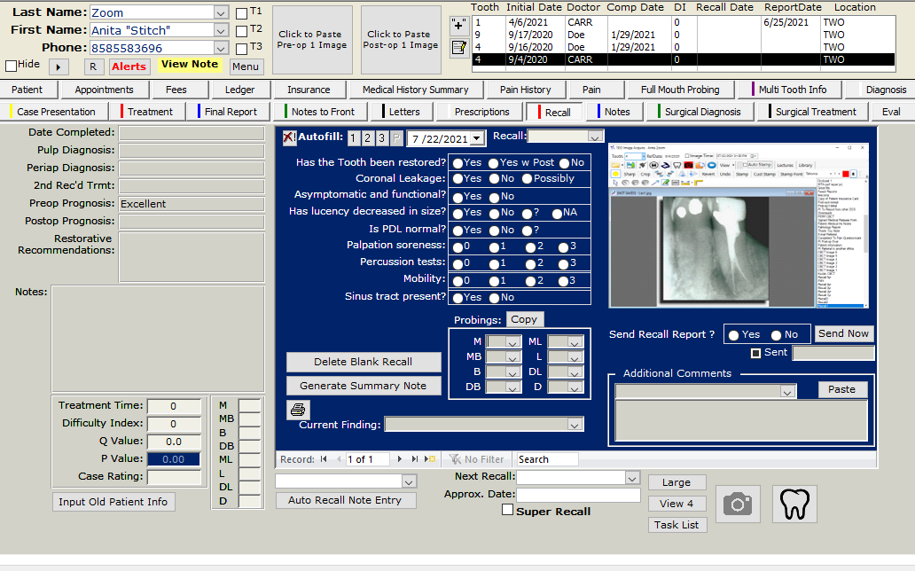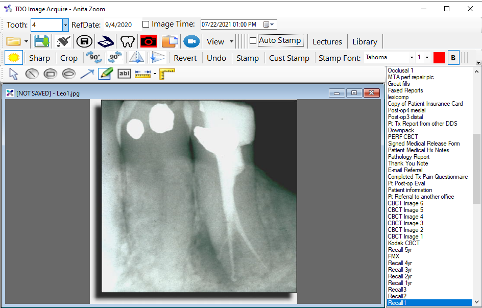 If Provider needs to take another xray or photo for a different tooth that needs recall, this can be done while Acquire page is still open. Please follow the steps below: