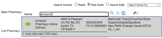 - Once Mail Order searching is enabled, simply type the pharmacy name, and the search will pop right away.