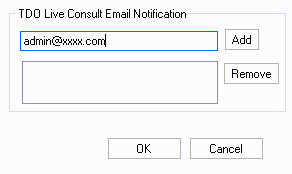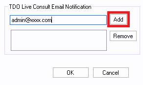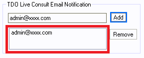 1 To remove any email address under “TDO Live Consult Email Notification”, make sure to select the email address to be removed, then click the “Remove” button.