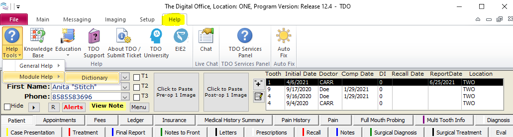 Access the dictionary: Help > Help Tools > Module Help >Dictionary