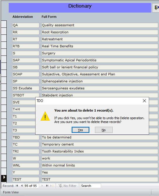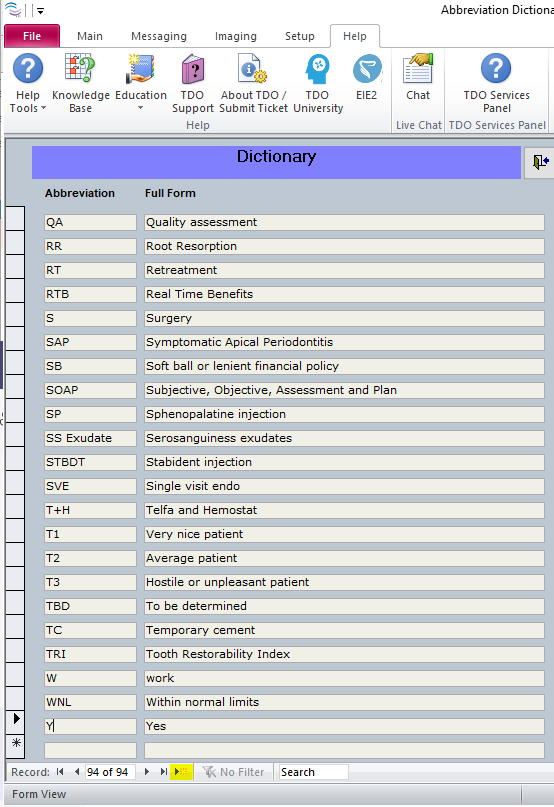 TDO Dictionary allows you to streamline your practices’ preferred abbreviations, and allows employees to find out what an abbreviation stands for or find the preferred abbreviation for a term or phrase.