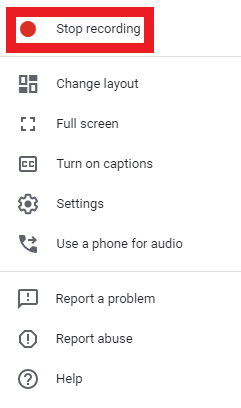 6. Once the meeting is over, click ’More’ > ’Stop recording’