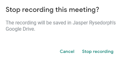 7. You’ll see a message notifying you that the recording will be saved in your Google Drive. Click ’Stop recording’