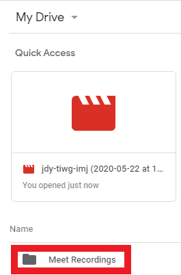 9. Alternatively, you can open Google Drive yourself, and navigate to the ’Meet Recordings’ folder, which you should find in the root directory