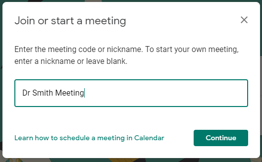 You may have noticed that, if they join on a desktop computer, the patients can join the meeting without a Google account. So for patients who both a) Have a quality microphone and camera (usually a USB webcam) attached to their desktop computer and b) Do not have a Google account, it may be easier to have them join the meeting from desktop rather than mobile.