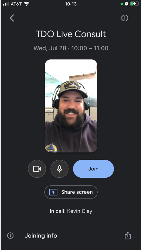 1. Start or Join the scheduled TDO Live Consult meeting.