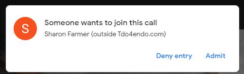 Whichever method the patient uses to join the meeting, you, the organizer, may have to click ’Admit’ to grant them access to the meeting.