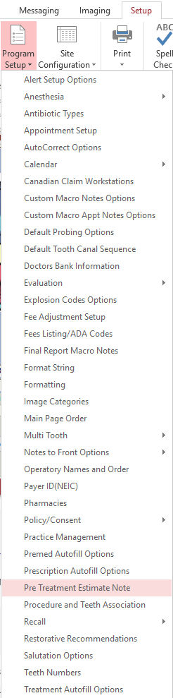 Click on Setup > Program Setup > Procedure & Teeth Association.