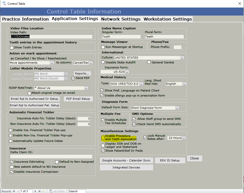 Setup > Site Configuration > Edit Control Table > Application Settings > Enable Procedure and Teeth Association.