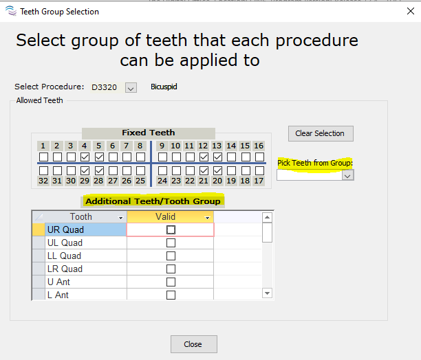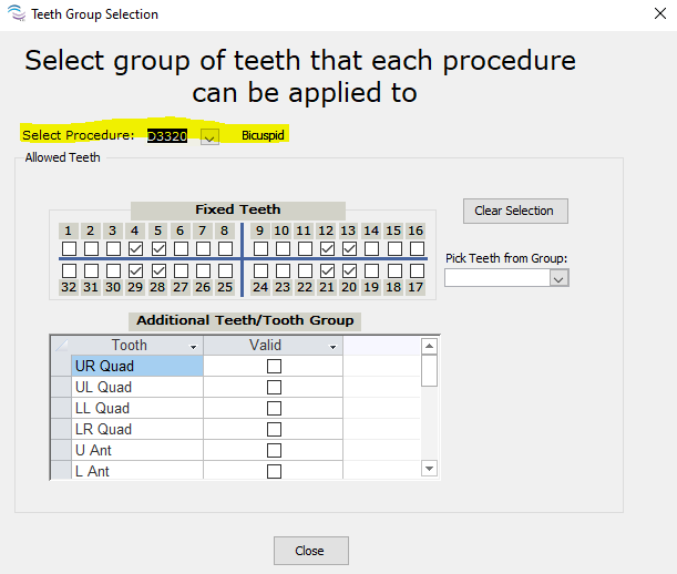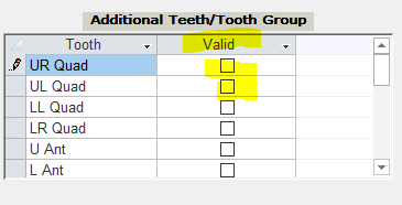 Click the Valid box for “Multiple” teeth that the code is valid for.