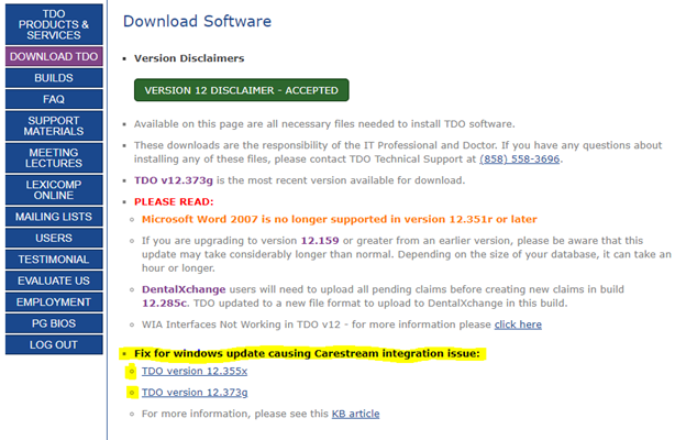 - Click on the Download TDO button in the left hand navigation. There is a patch listed under the Fix for Windows Update. Causing Carestream Integration Issue. Download the link for your version of TDO and save the file to a location that you can easily access for the next step.