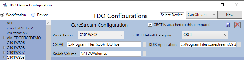 To configure CBCTs (for either viewing or Acquiring) in TDO, navigate to Setup > Site Configuration > Device Configuration: