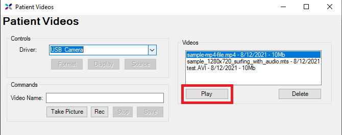 - In the Patient Videos window, you can select any of your videos on the right hand side and use the Play button to view the video. The video will open using the default video playback app in Windows.