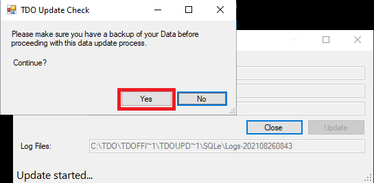 - A TDO Update Check window (shown below) will pop up in the bottom right of the screen, click Yes to proceed