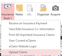 - Select Upload Claims - if this is greyed out then there are no claims needing to be uploaded