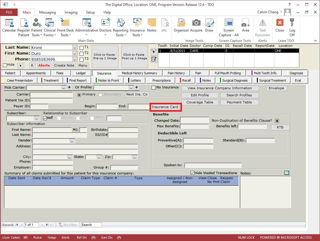 Infograbber - importing patient insurance information into TDO