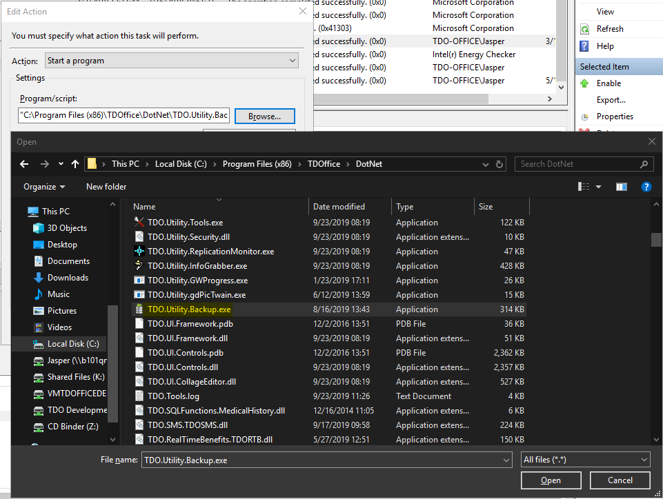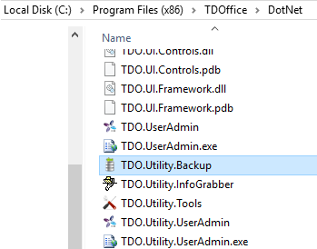 It should be selected to run from "C:\Program Files (x86)\TDOffice\DotNet\TDO.Utility.Backup.exe"