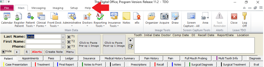 1. With TDO open, click the Help button at the top of the program.