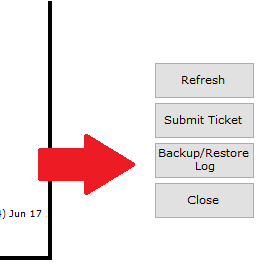 3. In the lower right hand corner of the About TDO window that pops up, select the Backup/Restore Log