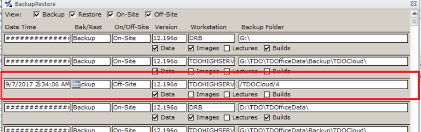To restore, you must have a recent backup of your data because the restore process will replace your current data with the data from the last backup. To restore, open the “Backup TDO” shortcut on the desktop and make sure the following fields are correct: