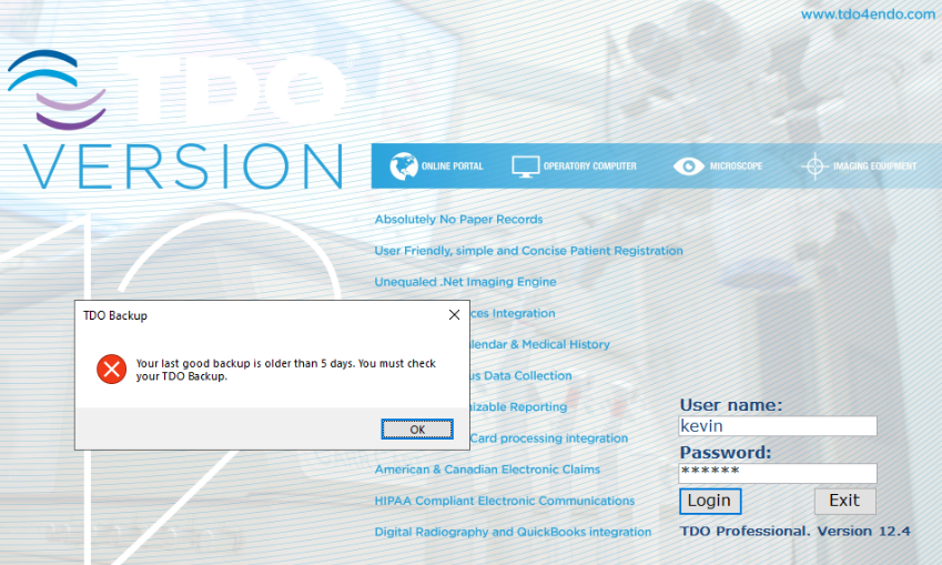 REMEMBER: The doctor is responsible for the TDO backup! This is not the responsibility of the IT Professional, Office Manager or TDO Technical Support. This is the doctors’ responsibility alone.