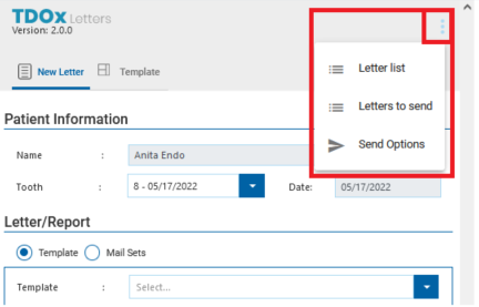 - To eliminate any needs for re-training, the only nuance is that the "Letters List", "Letters to send" and "Send Options" were merged into a single menu. It is an icon of three dots as seen below.