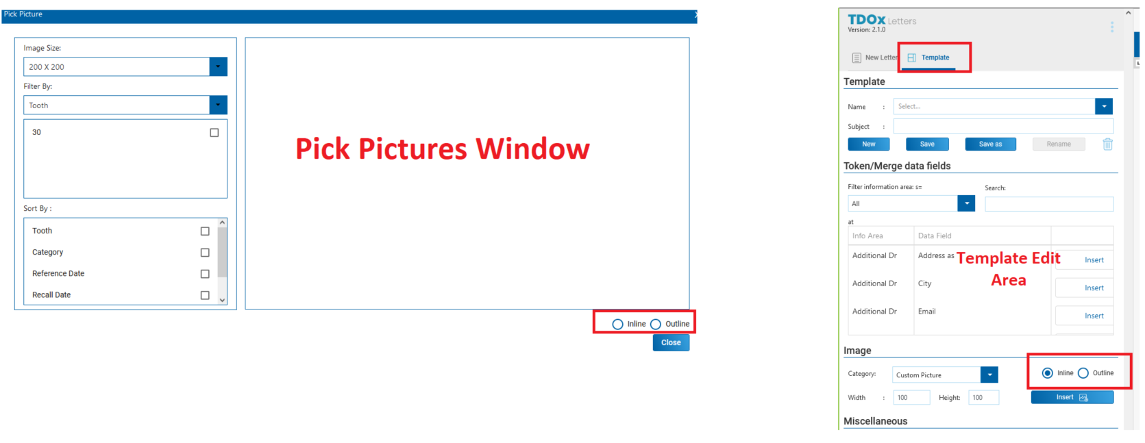 - Applying an image as "Outline" as opposed to "Inline" will automatically send the letter out as a PDF attachment.