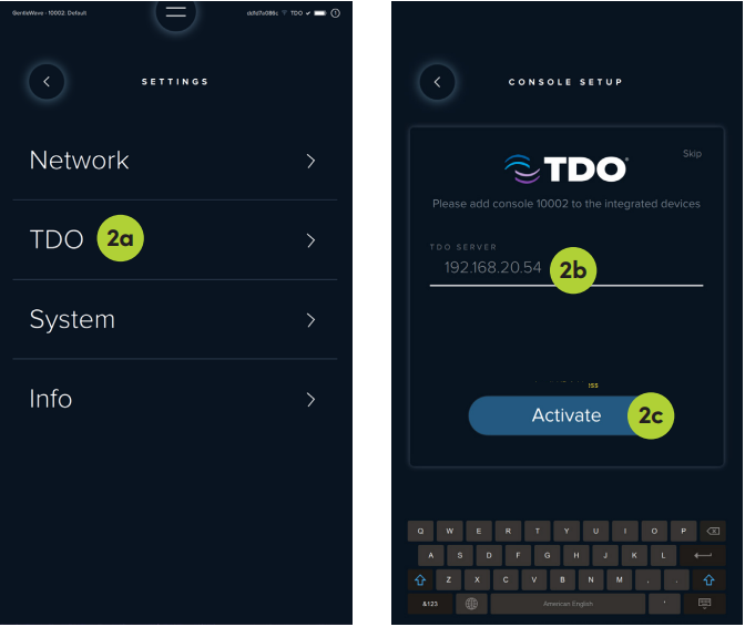 - One you're certain the IP Address is correct, Press Activate on the console to enable TDO