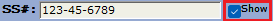 A patient's social security number can be added on the Patient page in the field SS#. By default the social security number while be hidden with asterisk symbols "***." To view it check the box to the left labeled as Show.