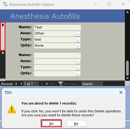 - On your keyboard click Delete - this will prompt a confirmation window that you'd like to remove the record, click Yes to permanently delete it
