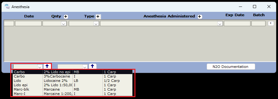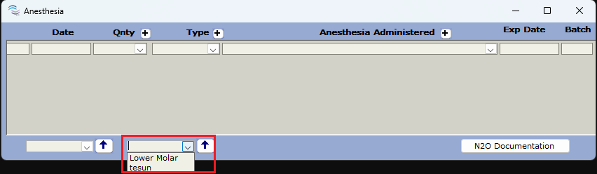 Dropdown field lists Anes, Type, and Quantity (Qnty) can be customized to better suit your office's needs. For detailed steps on how to use any of the below right click options please visit the following linked article: [v12] Right-Click options.