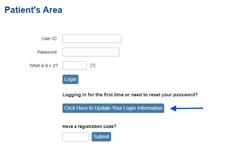 The patient will go to your Patient Portal Login page. They need to be entered in TDO with a valid email address. They can click on "Click Here to Update Your Login Information" to set a password for their account.