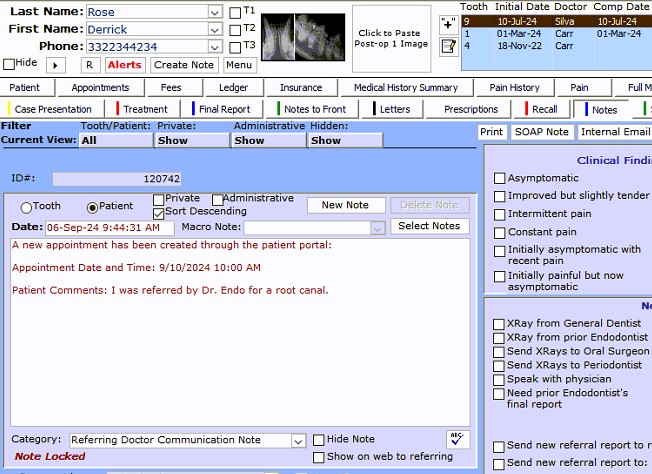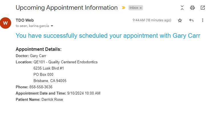 The appointment will be entered into the calendar in TDO and a note will be entered for the patient.