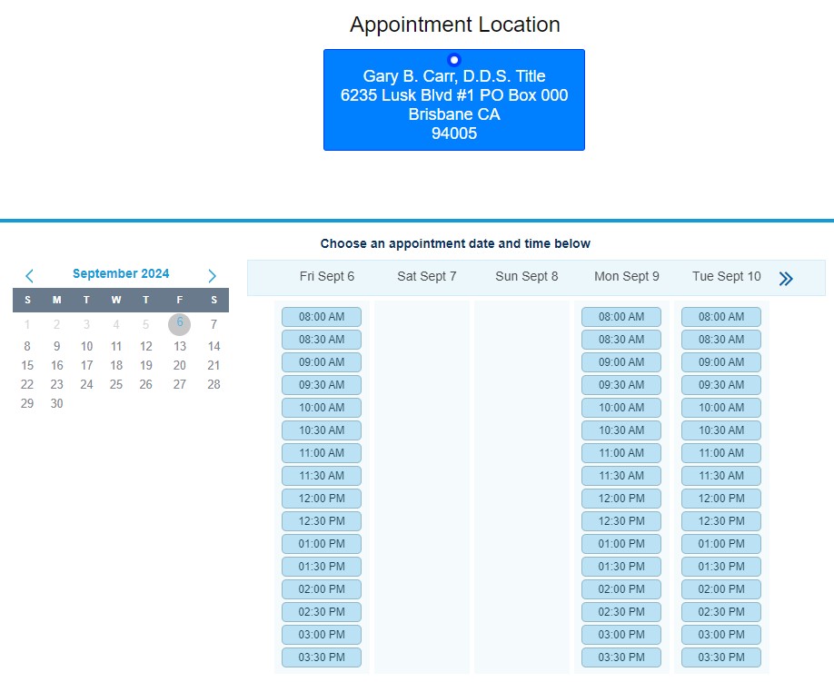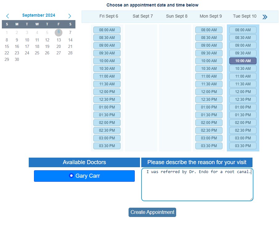After the patient logs in, they can click the menu link for Schedule Appointment and then proceed to schedule their appointment.