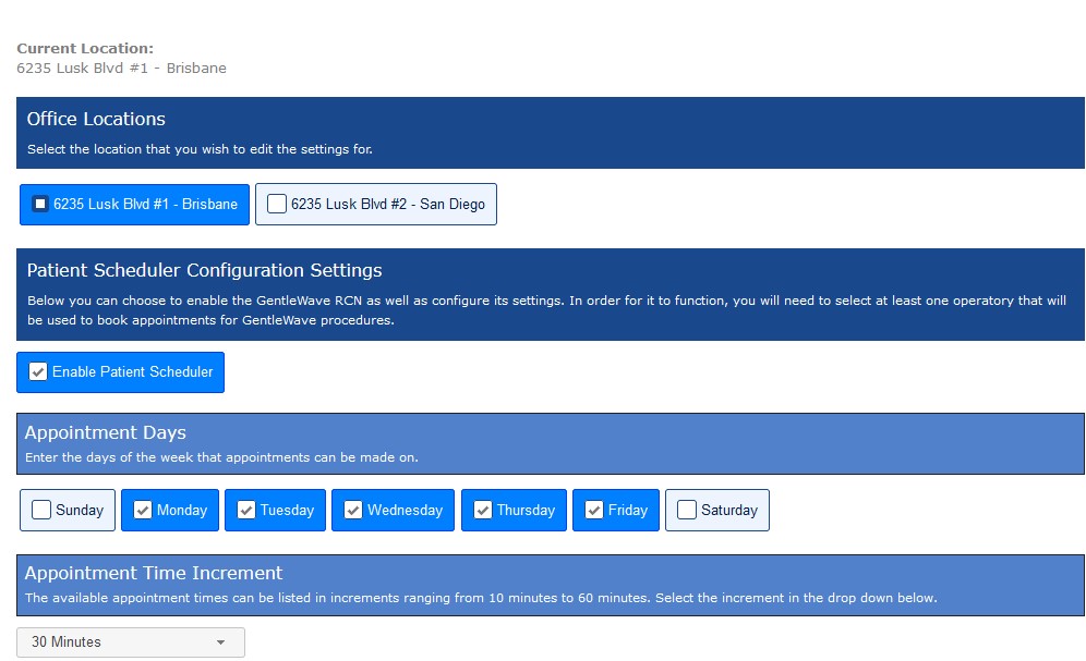 - Click Enable Patient Scheduler when you are ready to have patients use this feature
