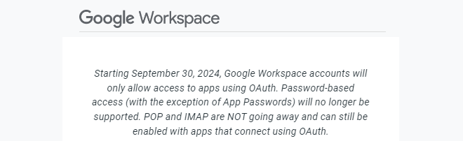 App Passwords) will no longer be supported. POP and IMAP are NOT going away